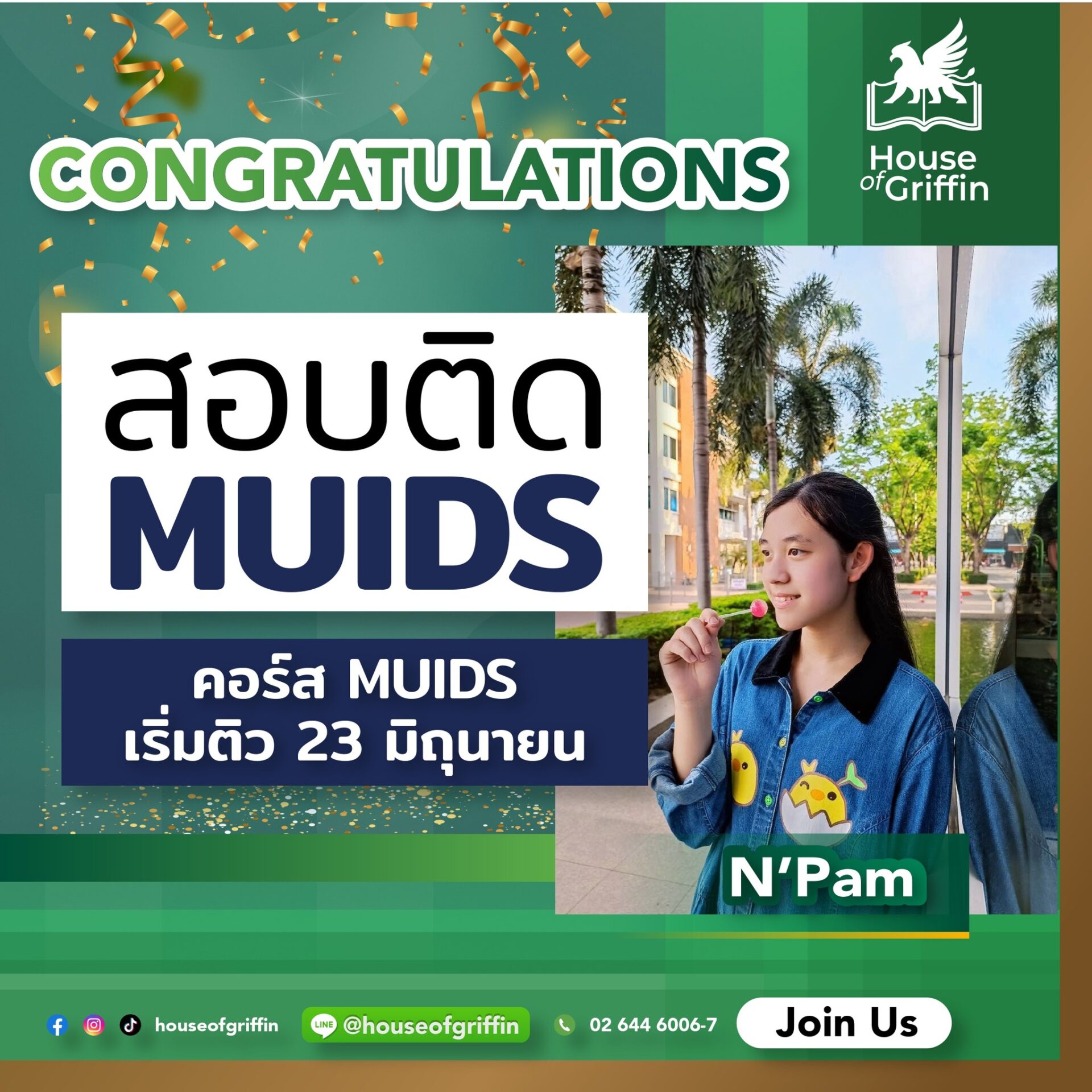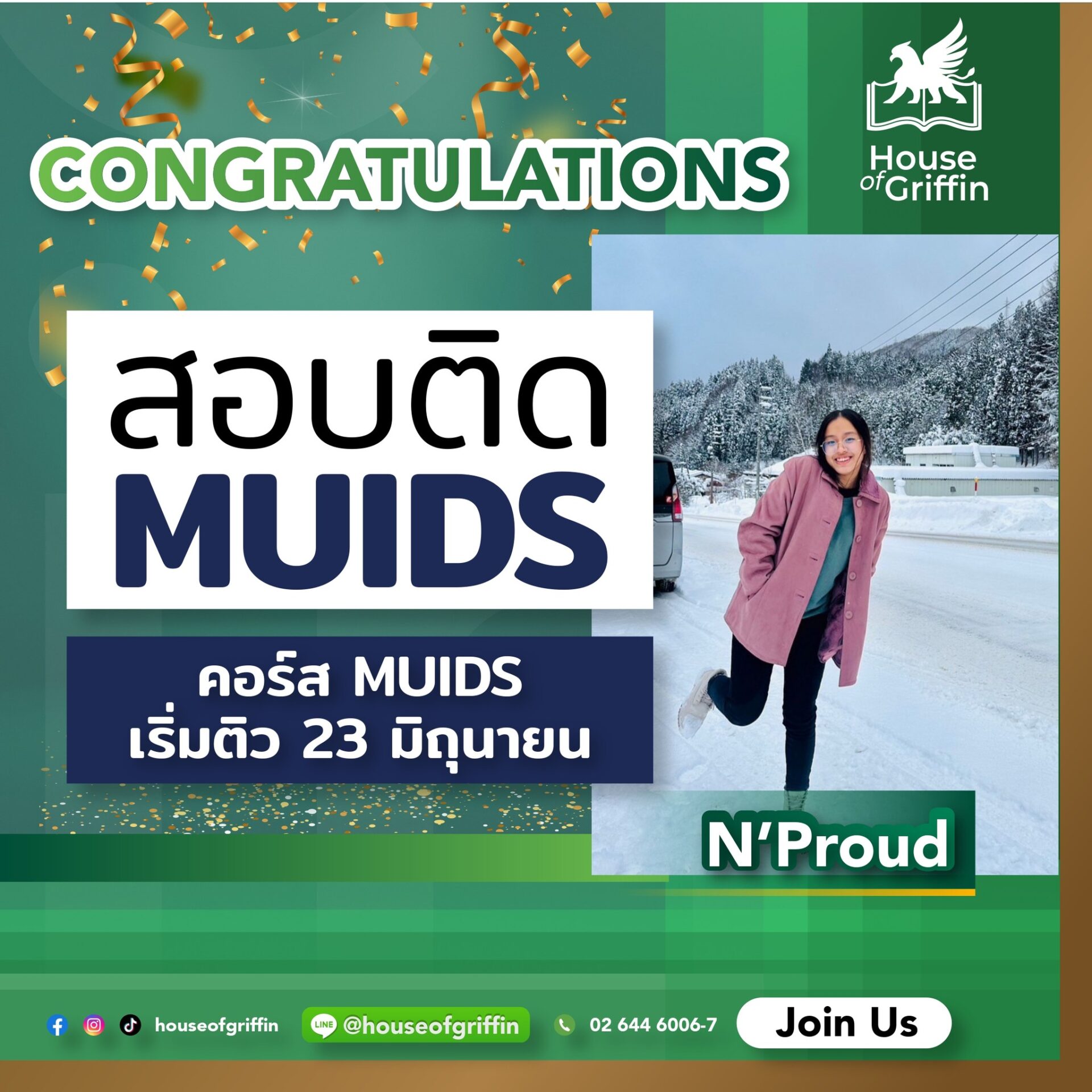 ถ้าใครกำลังมองหาคอร์ส ติวเข้า MUIDS ขอแนะนำให้ลงติวกับ House of Griffin สถาบันติวคุณภาพที่มีคอร์สติวเข้า MUIDS โดยเฉพาะ สอนครบทุกรายวิชาเพื่อการสอบเข้าทั้งติวเข้มโจทย์ TOEFL (ITP), แจกเทคนิคการเขียน Essay, ติว MAP TEST แบบเน้น ๆ พร้อมแชร์ทริกการสอบสัมภาษณ์ โดยมีคอร์สให้เลือกเรียนทั้ง MUIDS Regular เจาะลึกทุกรายวิชา เก็บครบทุกเทคนิคการสอบด้วยหลักสูตรการเรียนติวเข้ม 106 ชั่วโมง และ MUIDS Intensive หลักสูตรเร่งรัดสำหรับผู้มีเวลาเตรียมตัวน้อยแต่เห็นผลจริง เน้นเรียนแบบตะลุยโจทย์ อัดแน่นข้อมูลเต็ม ๆ ถึง 54 ชั่วโมง โดยน้อง ๆ ที่ลงคอร์สติวสอบเข้า MUIDS กับ House of Griffin สามารถสอบติด MUIDS ในรอบแรกได้ถึง 90% เลยทีเดียว ใครอยากสอบติด MUIDS ทักมาสอบถามรายละเอียดคอร์สเรียนได้เลย